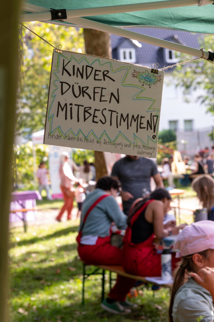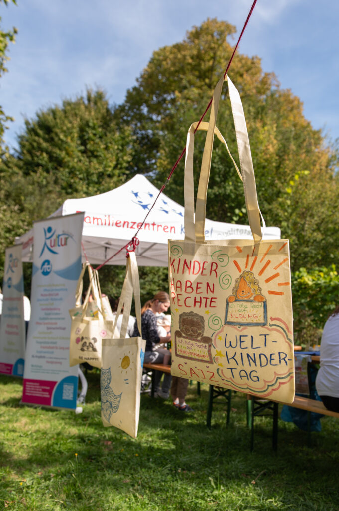 Unter dem Motto „Kinderrechte?! Klar, wir mischen mit!“ gabe es ein buntes Programm mit sportlichen, kreativen und spielerischen Aktivitäten, wie zum Beispiel Kistenklettern, Bedrucken von Stoffbeuteln mit Kinderrechten, Zirkus- und Bewegungsspiele und Bastelaktionen.